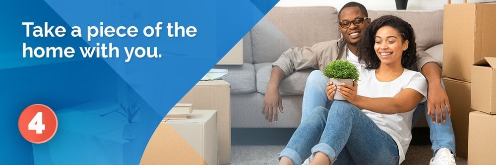 If a tangible keepsake is what you're looking for, check around your property and see what you can bring as a souvenir. One common suggestion from moving experts is repotting your favorite small plant, shrub, or young tree that you can bring to the new house. Even seeds from fruit trees, which you can grow at your new property, can be a meaningful souvenir as a symbol of uprooting and replanting.