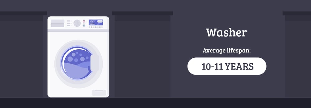 You can expect your washing machine to last up to 10 years, although this time frame depends on the machine's design and how well it’s been maintained. If it starts to work less efficiently and you’ve had it for almost a decade, sometimes repairing it only to last you a few more years could be more costly than replacing it with a new model.