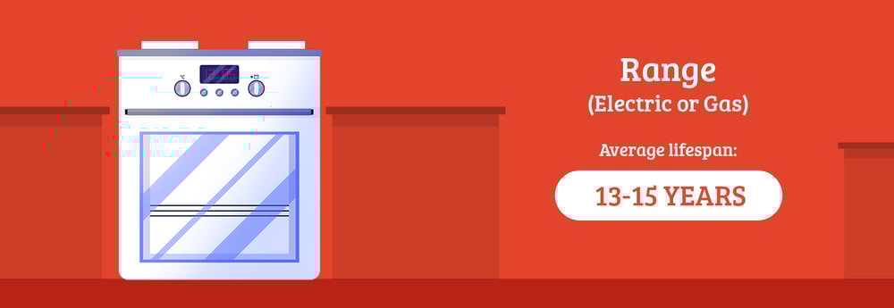 Ranges, whether gas or electric, are generally one of the more durable appliances in your kitchen, which is why these can last somewhere around 13 to 15 years. It's often the body or the electric control unit that goes bad before the cooking units. Or the style becomes dated, triggering the desire for a new appliance.