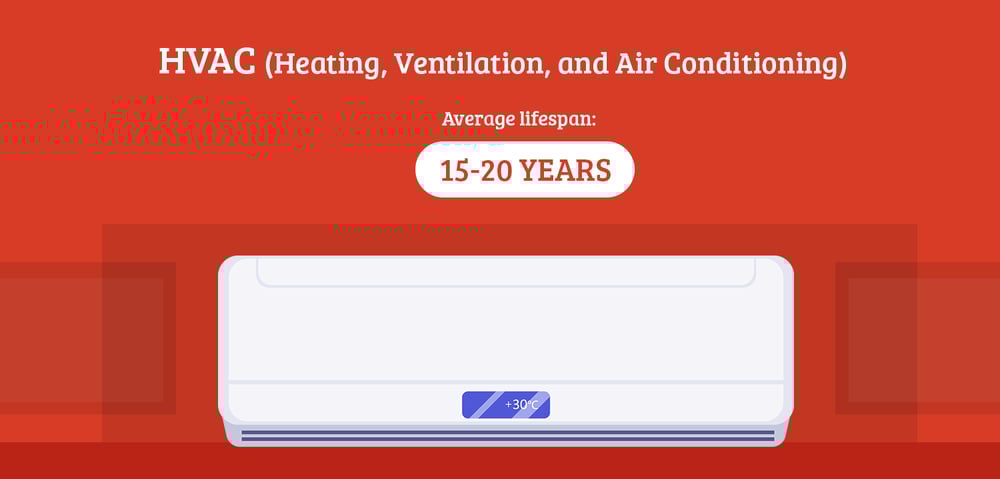 One of the largest systems in your home, and one of the most important for your comfort all year round, is your heating and cooling system. If you have a typical HVAC system, your air conditioner and furnace will both last an average of 15 to 20 years. Most thermostats generally last about a decade, but can last longer depending on the make, model, and type.