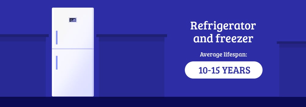 Your refrigerator is one of the most expensive but hardest working appliances in your home. And even though they constantly operate for 24 hours a day, they can still be expected to run for 10 to 15 years or more, depending on type and brand. Compact fridges have a relatively shorter lifespan, averaging for only 8 years. Freezers, on the other hand, will last anywhere from 12 to 20 years.