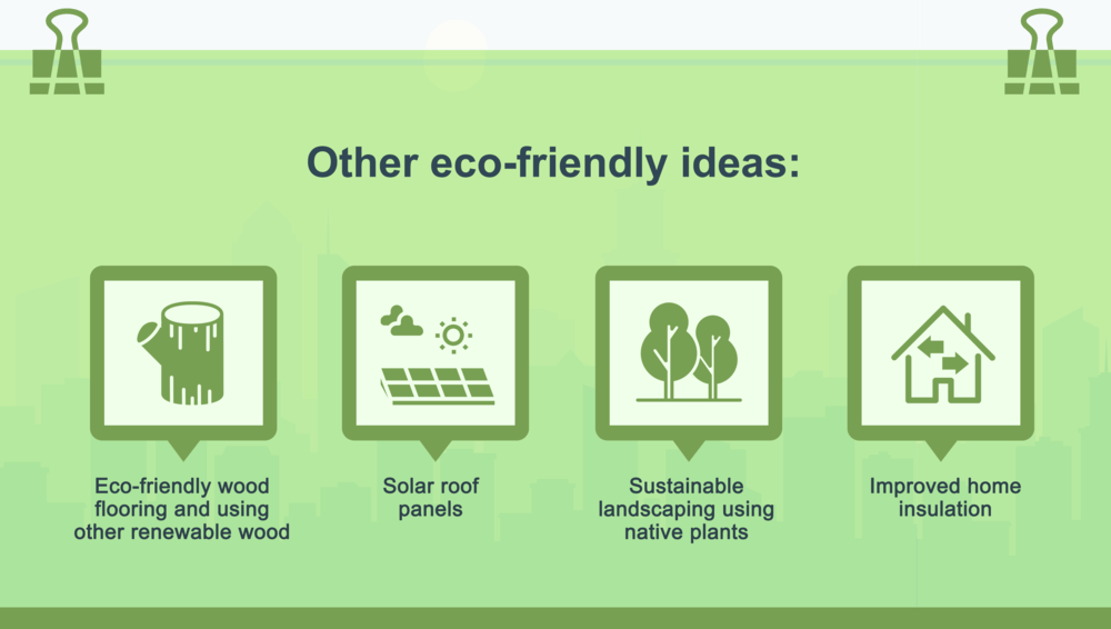 - Sustainable landscaping using native plants - One eco-friendly alternative to improve your home's curb appeal is landscaping using native species of plants. These plants are easier to maintain, and won’t be a risk to the surrounding ecosystem.